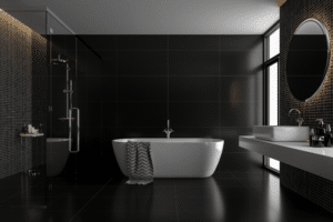 While neutral tones are still popular, 2026 is seeing a rise in bold colors, geometric tiles, and textured finishes. Matte black fixtures, vibrant mosaic walls, and patterned flooring add personality and style.